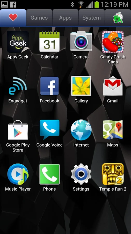 When Easy Launcher first loads up, it ORGANIZES all of your icons into four neat tabs - Favorites, Games, Apps and System, so that it’s easy to find the icon you’re looking for. You control what goes into Favorites, so that you always have FAST access to your most-used apps and games, while Easy Launcher automatically sorts the rest.